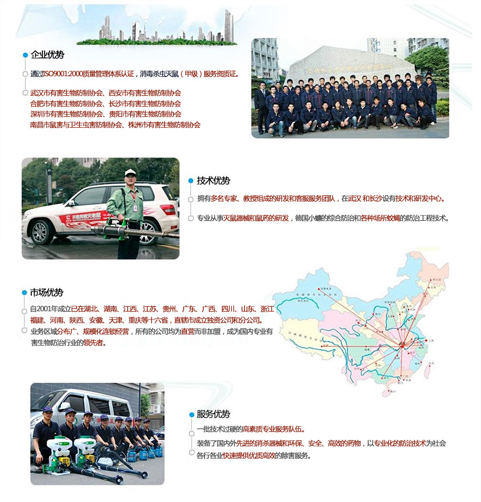 我們堅(jiān)持“誠(chéng)信、高效、安全、環(huán)保”的服務(wù)宗旨,所用器械均為世界優(yōu)質(zhì)產(chǎn)品,所用藥物均系國(guó)家藥檢部門和衛(wèi)生防疫部門批準(zhǔn)的安全、低毒的城市衛(wèi)生用藥,并根據(jù)具體作業(yè)環(huán)境和防治對(duì)象情況變化,制定具體防制方案,保證優(yōu)越的防治效果和人體安全。